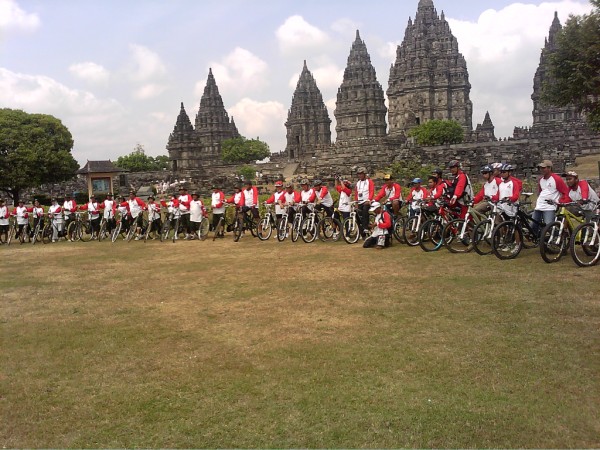 Foto Komunitas sepeda di Jogja di Candi Prambanan bersama sewa sepeda jogja atau javabali Trans wisata
