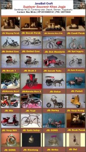 Miniatur candi borobudur, miniatur sepeda, miniatur kereta kencana, minitur becak, miniatur wayang, miniatur pandawa lima